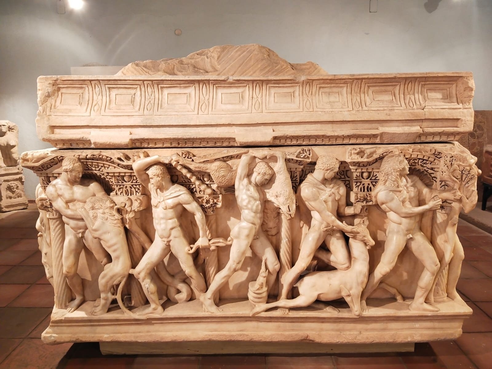 Heracles Sarcophagus: The Heracles Sarcophagus in Konya Archaeological Museum was found in 1958 during a construction. The sarcophagus, which is shown as the best example of the Heracles sarcophagi made in high relief technique in Anatolia, is thought to belong to one of the notables of the ancient city of Pappa. The deceased person is depicted on the narrow side of the sarcophagus, and mythological stories about Heracles are depicted on the other three sides.